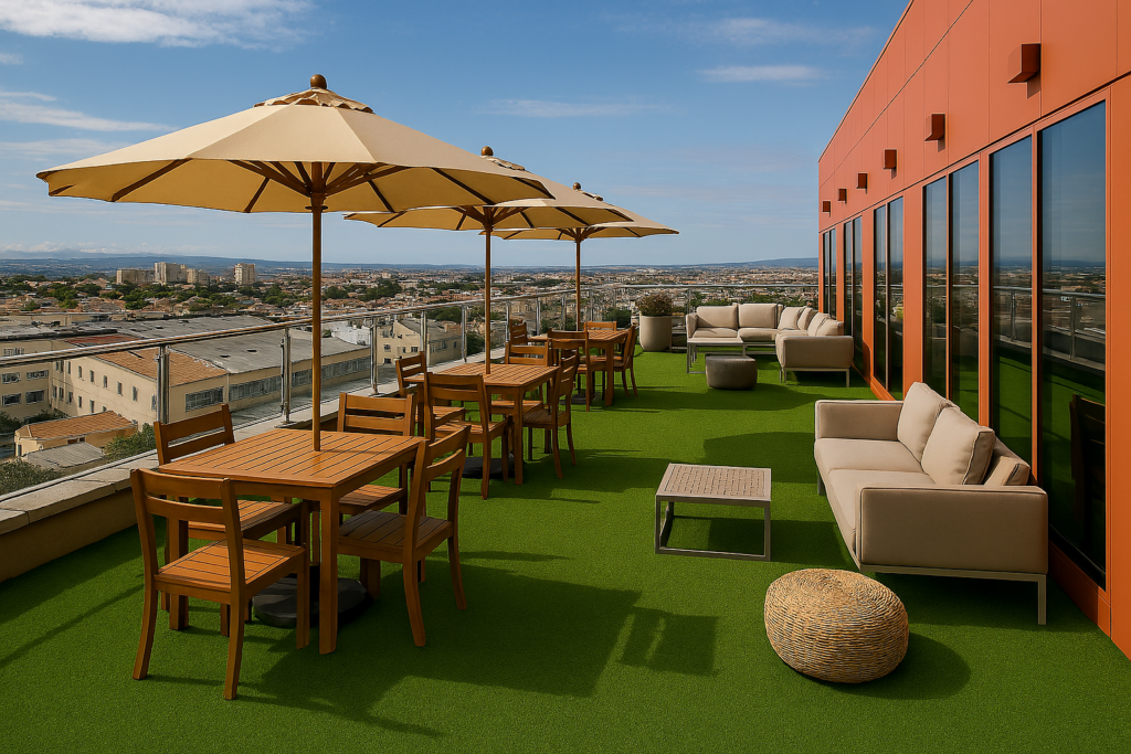 El corazón de Espacio7 es nuestra terraza ajardinada, un oasis urbano situado en la séptima planta con vistas panorámicas a Murcia.Un espacio exclusivo para: Trabajar al aire libre, Reuniones con encanto, Eventos y afterworks memorables, Networking en un ambiente natural, O simplemente desconectar y respirar. En ningún otro centro de negocios encontrarás un espacio así.